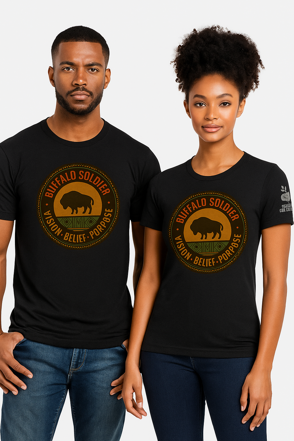 Honor the legacy. Embody the mindset. The Buffalo Roots Tee blends bold design with deep meaning, paying tribute to the strength of the Buffalo Soldiers and the power of purpose-driven living. Crafted for comfort and impact, this tee is more than apparel—it's a reminder to stand firm in your vision, believe in your path, and live with purpose.