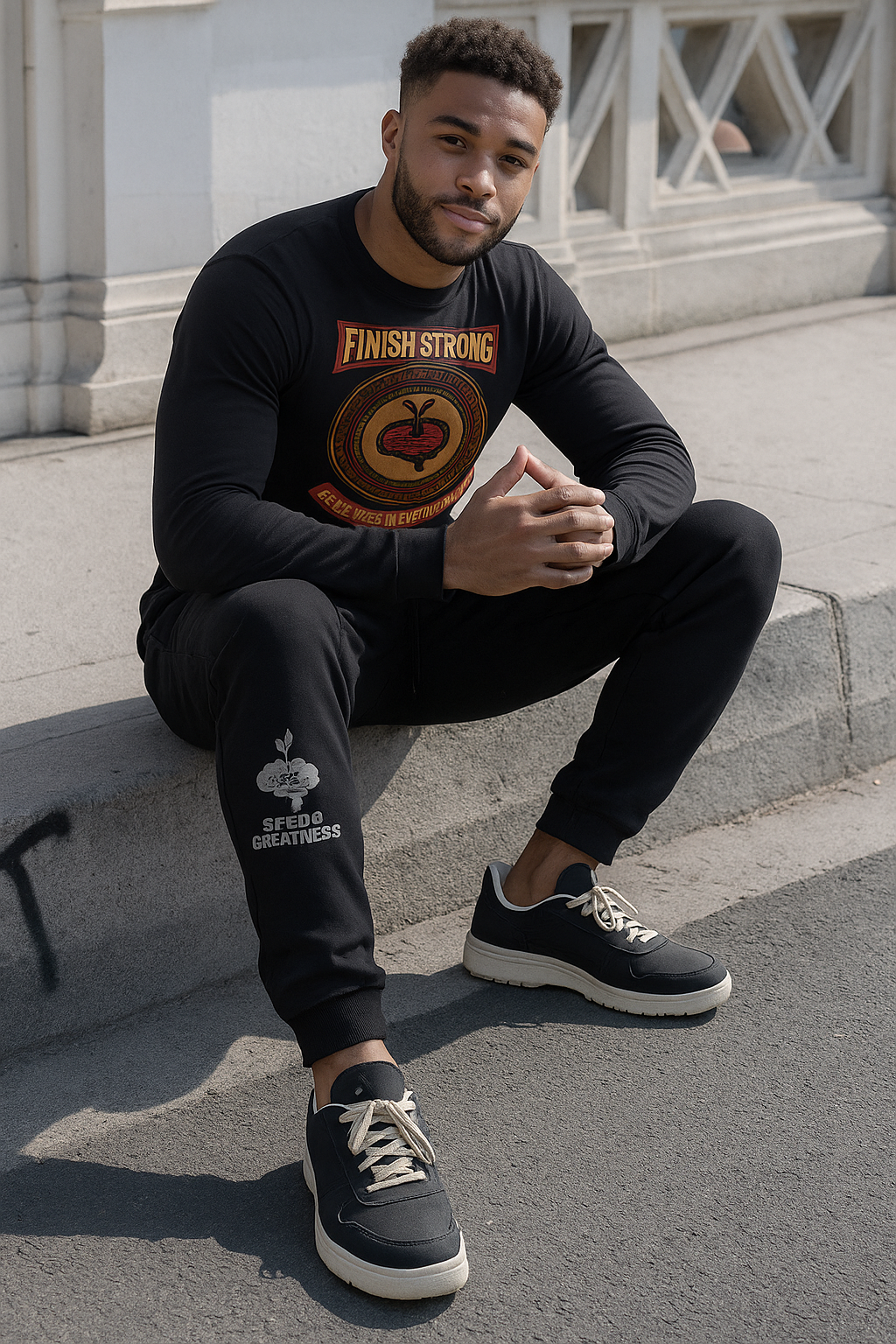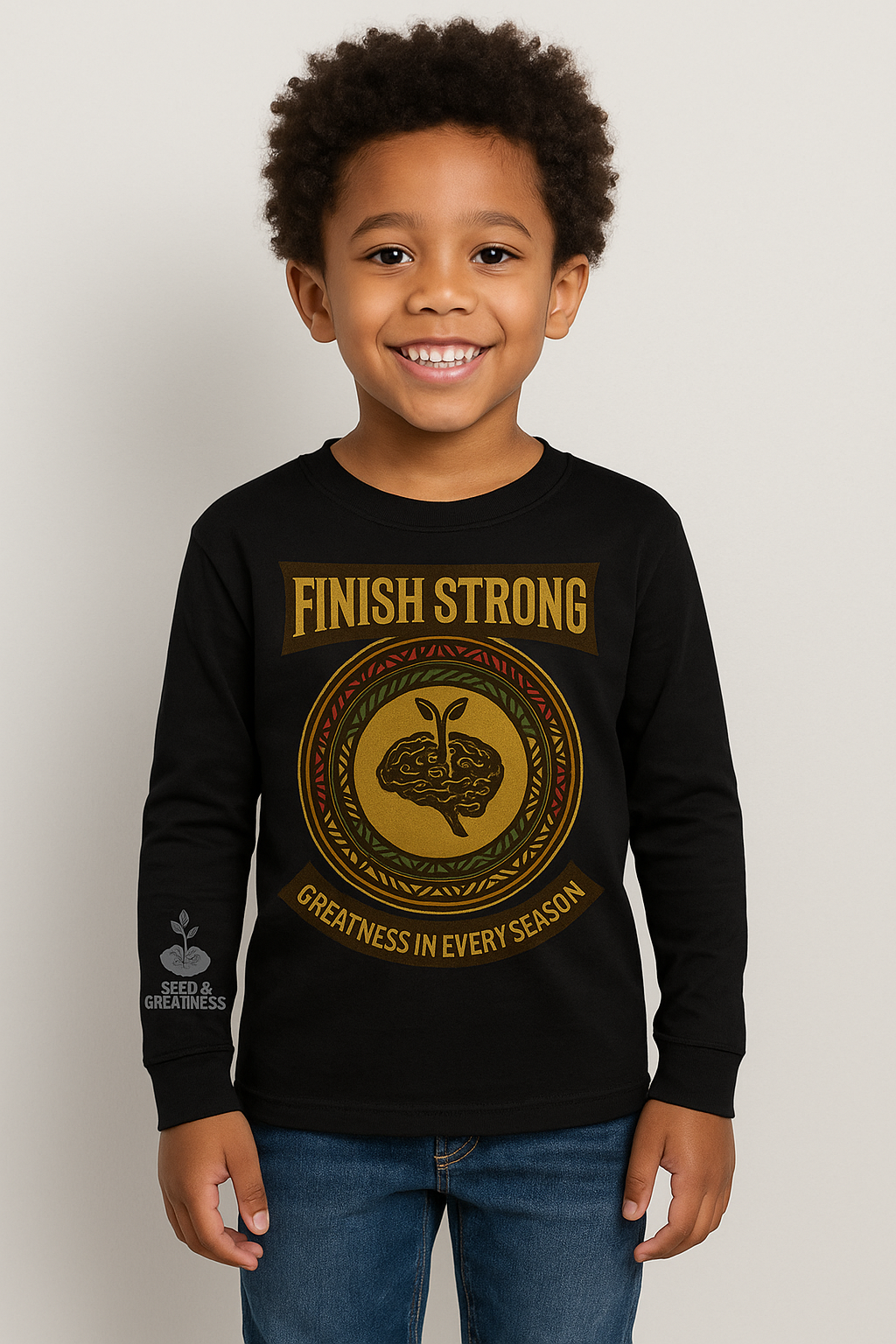 Stay driven through every season with the Seed4Greatness “Finish Strong” Long Sleeve Tee. Designed for comfort, purpose, and performance — this shirt blends soft, durable cotton with a bold motivational emblem that reminds you to push through and finish what you start. Perfect for training, casual wear, or representing greatness wherever you go.